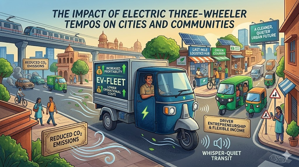 This surge in adoption highlights the pivotal role of electric three-wheeler tempos in shaping urban mobility and logistics. From reducing carbon emissions and noise pollution to offering cost-effective solutions for last-mile deliveries, these vehicles are changing how goods are being transported. Let us explore the profound impact of electric tempos on our cities and communities.
