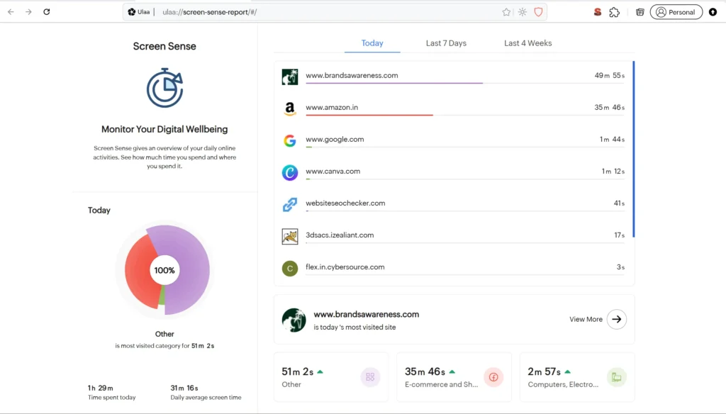 Ulaa tracking your daily use on each website. You can check and track spend time on Ulaa browser. it can be check monthly, weekly and daily basis.